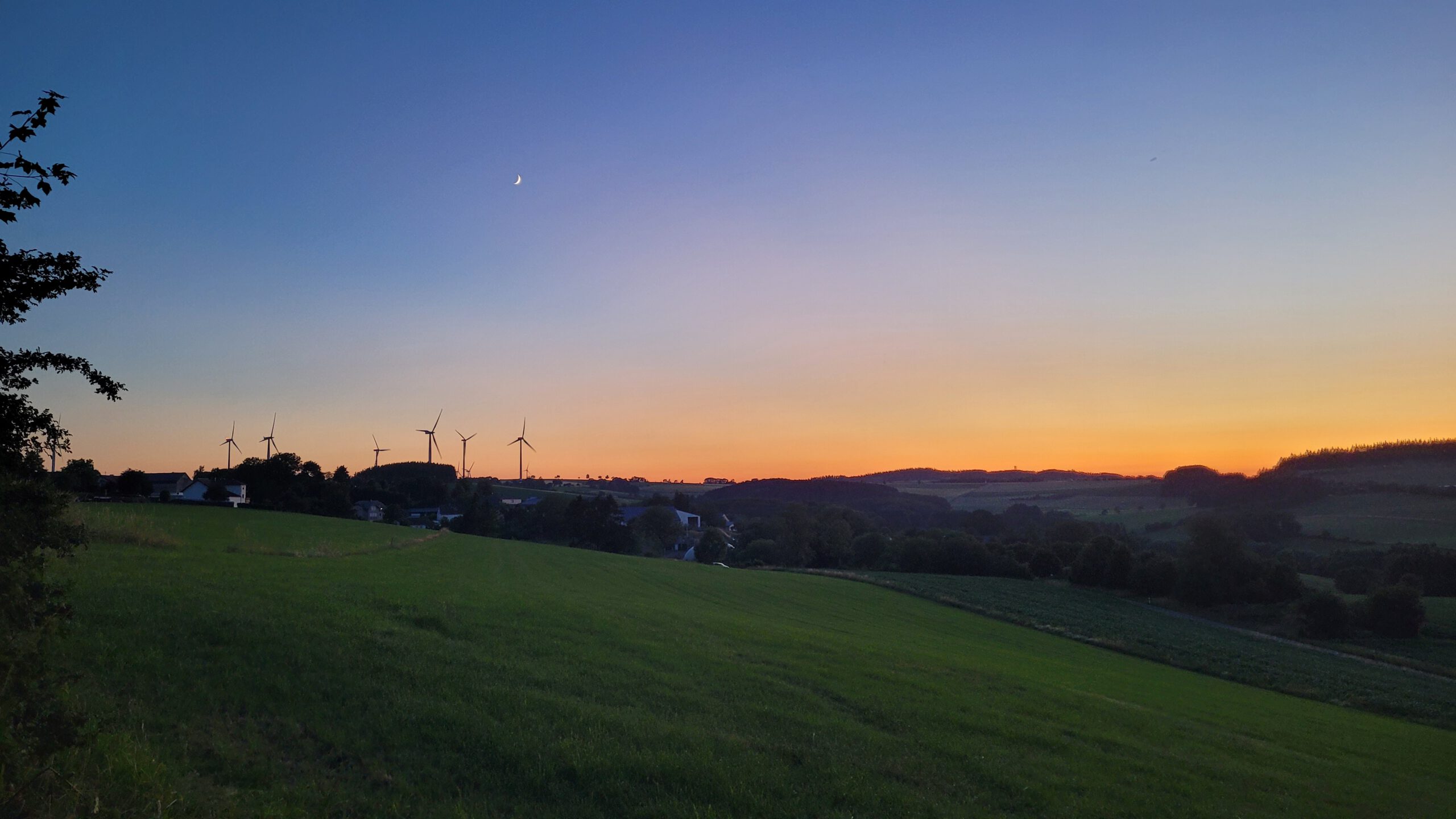 Nach 50m purer Luxus: Die Toilette am Sportplatz ist nagelneu und offen. Wolken ziehen auf, es geht durch Felder, an Windkraftanlagen vorbei. Auf und ab, wechselnder Untergrund inkl. Wasser.