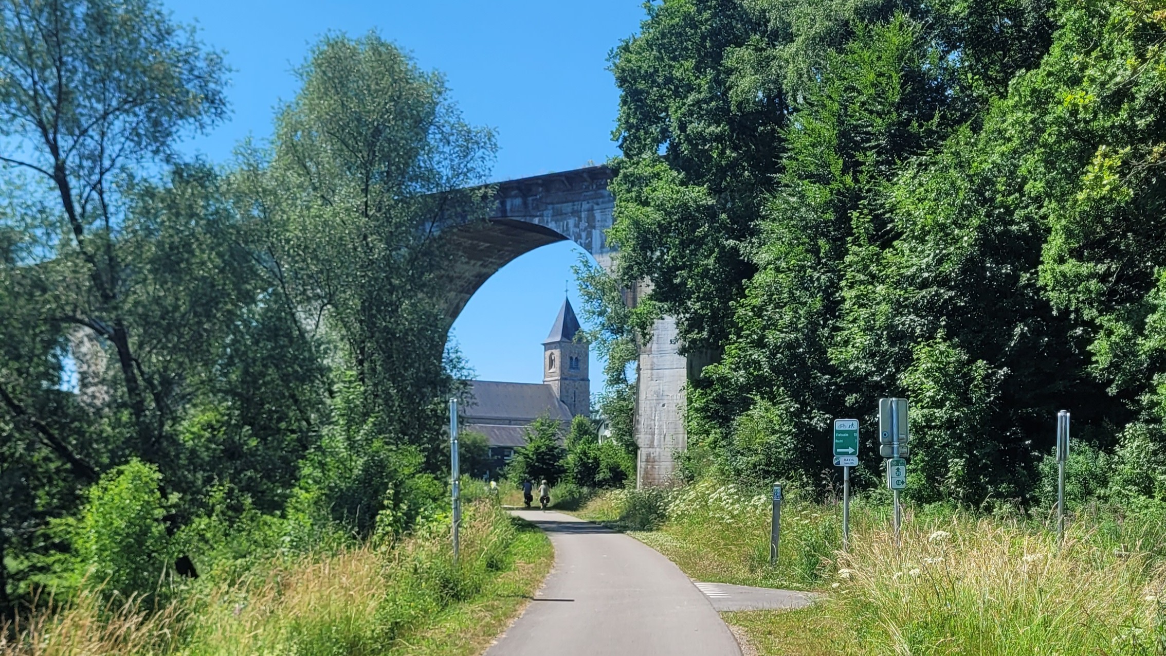 Biege ab Richtung Osten, treffe bei Noirthier auf die Vennbahn. In praller Hitze geht es Südwärts.
