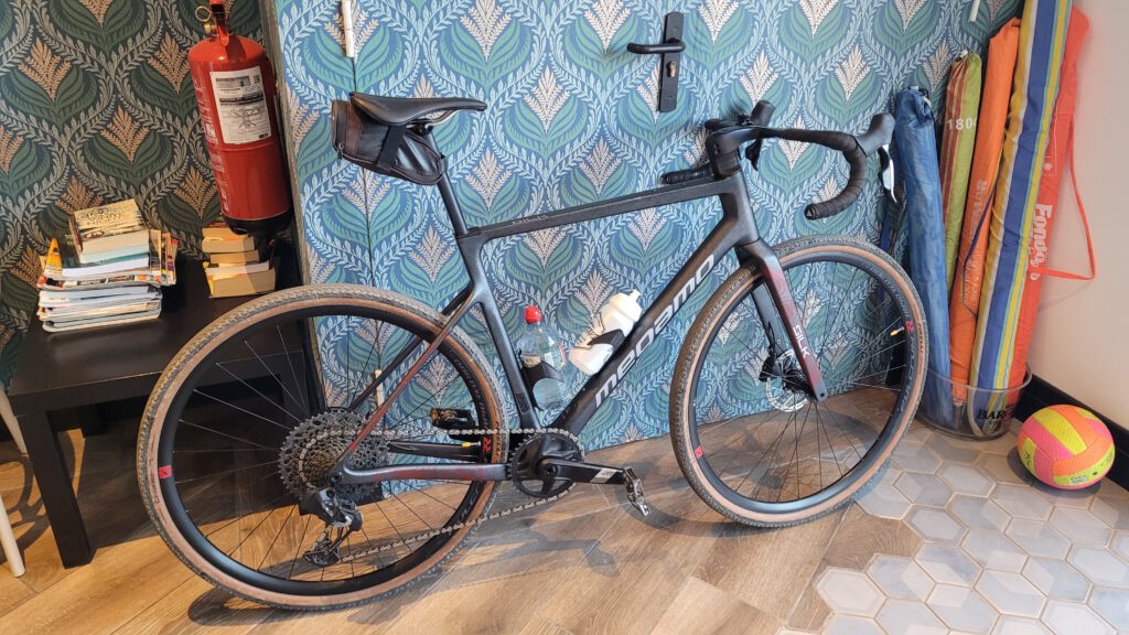 Das Megamo SILK ist mit einer elektronischen Sram Schaltung ausgerüstet, was mir den Einstieg in die Drop Bar Welt einfach macht. Vollcarbon Chassis und leichte Laufräder von Fulcrum mit Pirelli-Reifen drücken das Gewicht bergauf, und bergab verzögern die Sram Scheibenbremsen. Auch ein Novum für mich: Das Rad darf mit in die Wohnung 🙂