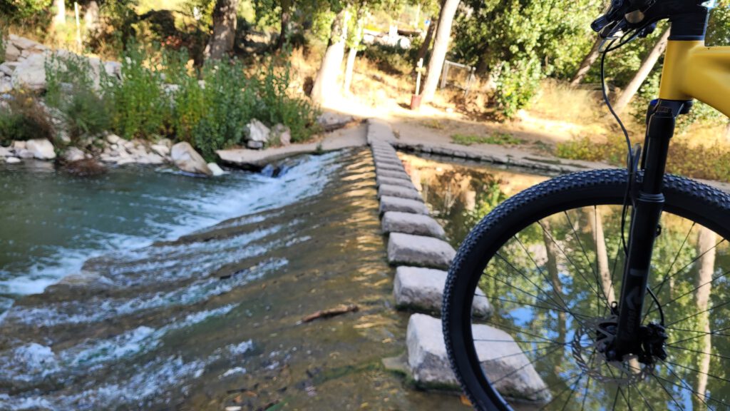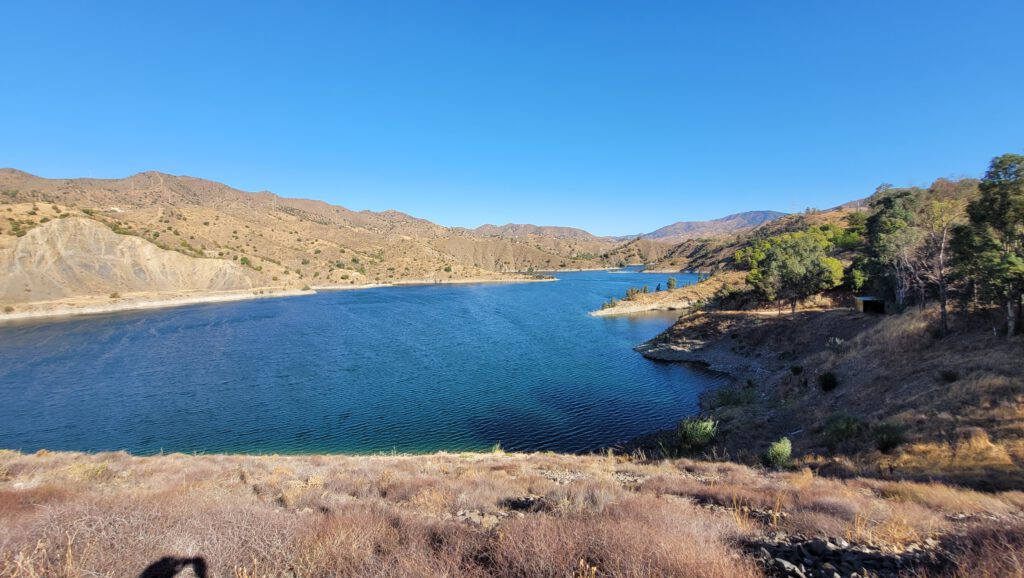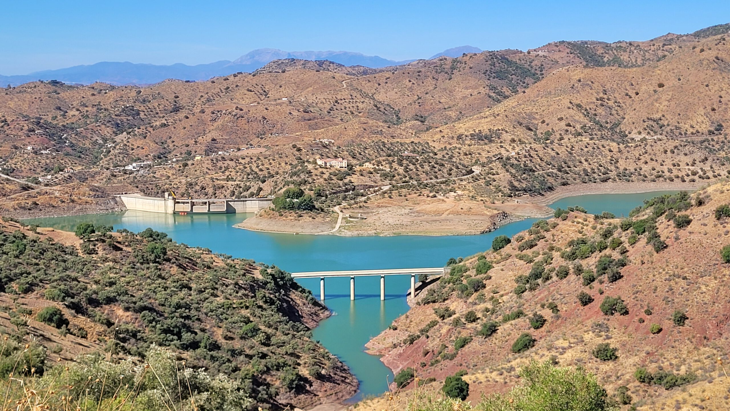 Bei der Umrundung des Embalse wartet noch mal eine heftige Steigung auf mich, bei über 30° und praller Sonne bin ich dann froh am unteren Ende des Stausees ein einfaches Lokal zu finden, und sitze gemütlich im Schatten, bevor ich mich auf Asphalt wieder in die Abfahrt (mit dem ein oder anderen Gegenanstieg) stürze.