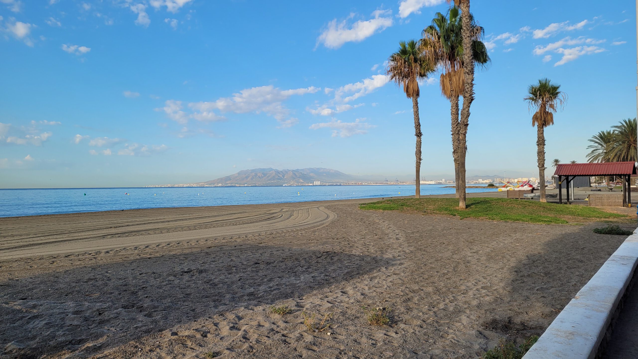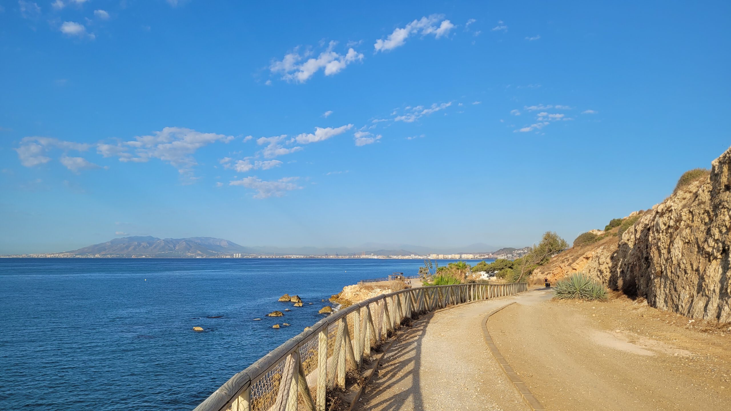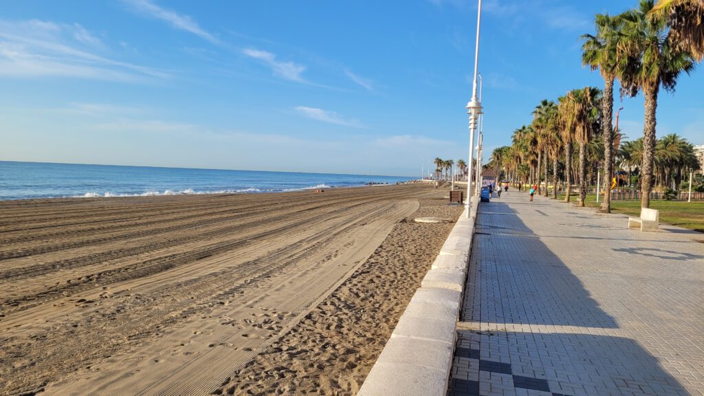 Der Plan für heute: Richtung Westen am Strand entlang bis Torremolinos und versuchen, ob ich um das Massiv des Monte Calamorro herum komme. Alhaurin läge dann wieder auf der Strecke.