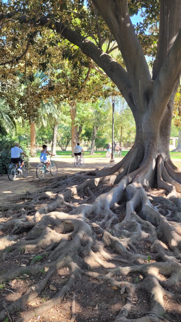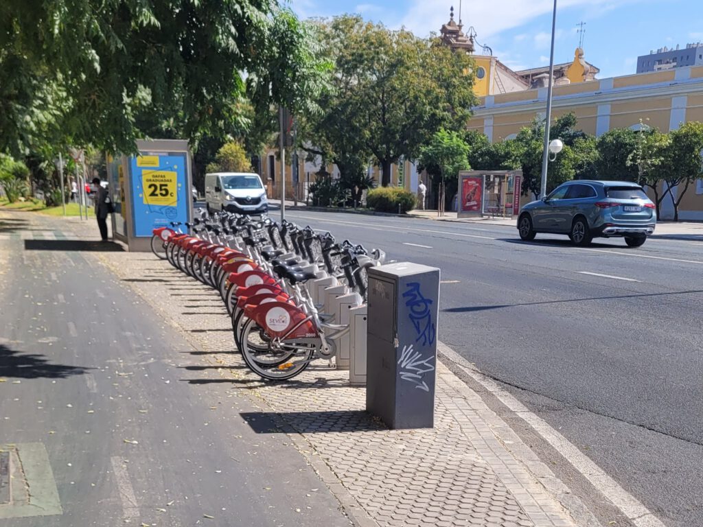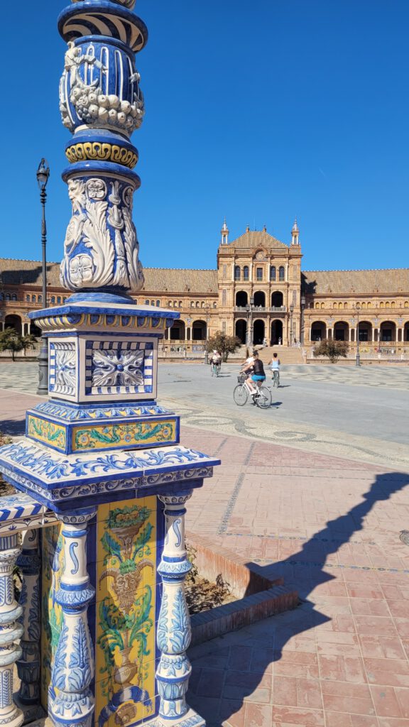 Sevilla zieht uns mit den kleinen Gassen, Sehenswürdigkeiten und Lokalen in seinen Bann. Unser Appartment liegt etwas außerhalb der Altstadt, so sind wir viel mit dem städtischen Verleih-Rad, dem Sevici, unterwegs. Vollgummireifen und Kopfsteinpflaster sind zwar eine sehr schweißtreibende Kombination, aber schneller als zu Fuß sind wir allemal.
